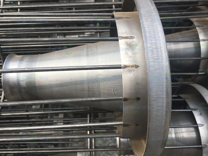 1、除塵器骨架采用圓型結構,袋籠的縱筋和反撐環分布均勻,并有足夠的強度和剛度,防止損壞和變形,頂部加裝冷沖壓短管,用于袋籠的垂直及保護濾袋口在噴吹時的磨損。