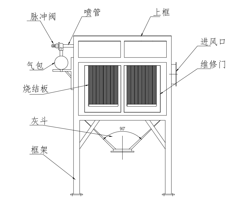 ●安裝維護(hù)方便。安裝更換燒結(jié)板只需打開(kāi)除塵器檢修門(mén),擰緊固定燒結(jié)板的兩個(gè)螺栓即可完成一塊濾板的裝配。在日常生產(chǎn)中,幾乎無(wú)須維修保養(yǎng)。