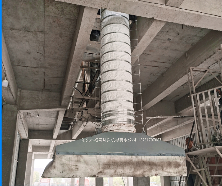 (2)水泥揚(yáng)塵屬冷態(tài)粉塵空氣氣體,而冷態(tài)空氣再加上水泥粉塵的擴(kuò)散混合,比重密度增大,根據(jù)水泥粉塵空氣的特殊性,要求吸塵罩設(shè)計(jì)時(shí)要有足夠大的負(fù)壓,要求吸塵罩口距離塵源800mm之間。