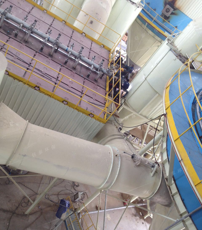 噴霧塔的尾氣中含有大量的粉塵和SO2等廢氣,經(jīng)過旋風(fēng)除塵和布袋除塵后的煙氣的粉塵量可降到30mg/m3以下,比之前的8000mg/m3降低了兩個數(shù)量級,效果非常明顯。除塵器收集下來的粉塵都是原料直接包裝利用。