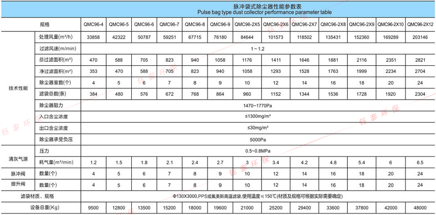 除塵清灰工作過程為:以一個袋為例,含塵氣體由進口處直接進入氣箱的袋室;由于有負(fù)壓風(fēng)機的引力驅(qū)動作用,含塵氣體由外及里,自下而上,克服阻力,穿越濾袋到達上部箱體;粉塵就會被阻擋在濾器組件之外,小的顆粒被吸附在濾芯的表面,大的顆粒直接掉到下面的灰斗中;經(jīng)過過濾后的含有微塵的氣體在脈沖提升閥處匯集,之后從出風(fēng)口排出,此時便是干凈的氣體。過濾狀態(tài)就是對含塵氣體進行除塵。當(dāng)過濾工作達到一定時間(或阻力達到預(yù)先設(shè)定值),清灰過程開始。其工作過程為:控制器發(fā)出信號,使脈沖提升閥關(guān)閉,阻斷排氣;壓縮空氣脈沖閥開啟,以大于0.5MPa的壓縮空氣經(jīng)脈沖閥噴入凈氣室;并迅速膨脹入濾袋內(nèi),并產(chǎn)生振動作用,清除濾袋外側(cè)表面上的粉塵,粉塵掉落到灰斗。這個動作完成后(大約6~15s),壓縮空氣脈沖閥關(guān)閉,提升閥重新打開,該箱室的濾袋重新回到過濾狀態(tài)。