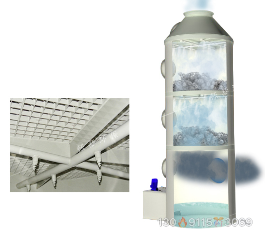 廢氣噴淋凈化塔的工作原理是將氣體中的污染物分離成無害物質(zhì),以達(dá)到凈化氣體的目的,屬于差動(dòng)接觸逆流,塔體填料是氣液接觸的基本組成部分。進(jìn)入塔體的氣體進(jìn)入塔體后,氣體進(jìn)入填料層,填充層有頂部的噴淋液和前面的噴淋液,并在填料上形成一層液膜。當(dāng)氣體流過間隙時(shí),它與填充物接觸液膜并進(jìn)行吸收或中和反應(yīng)。填充層可以提供足夠大的表面積。氣體的流動(dòng),并不會(huì)造成太大的阻力,氣體吸收或中和后被除霧器收集,從塔外的出風(fēng)口排出。